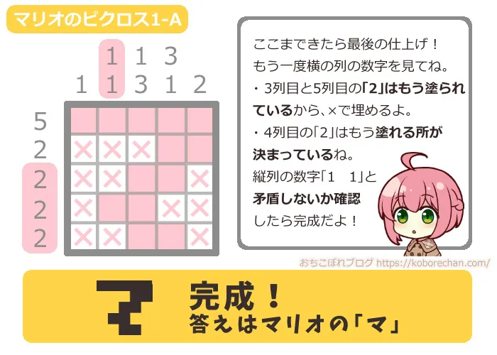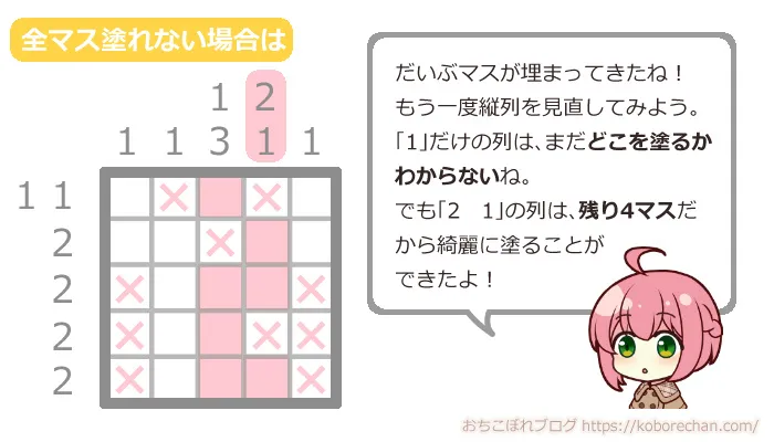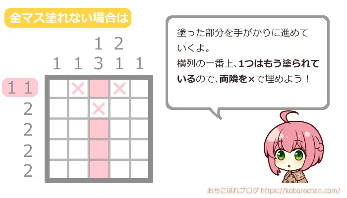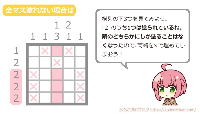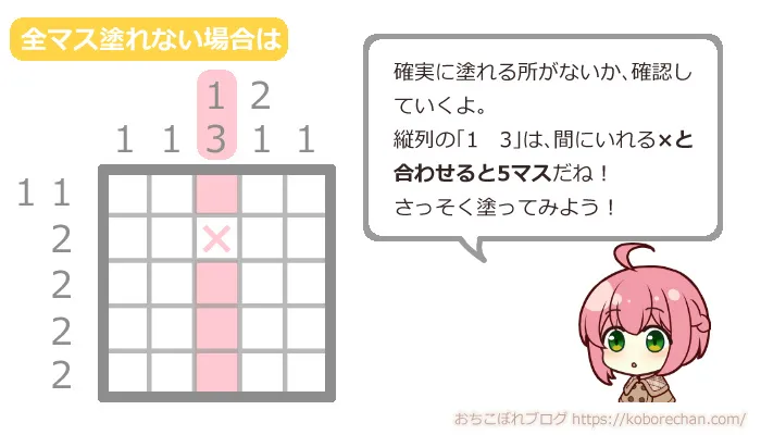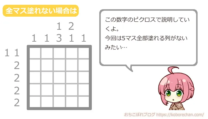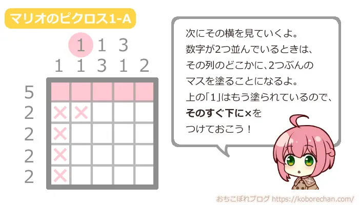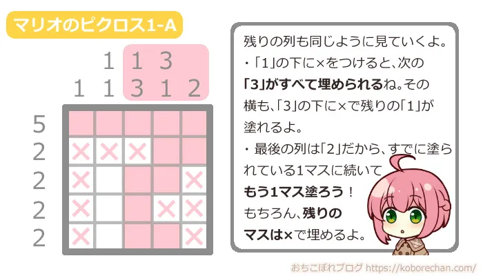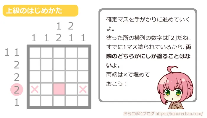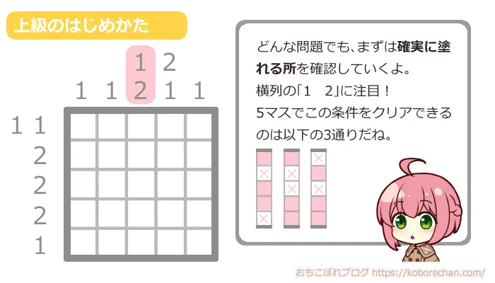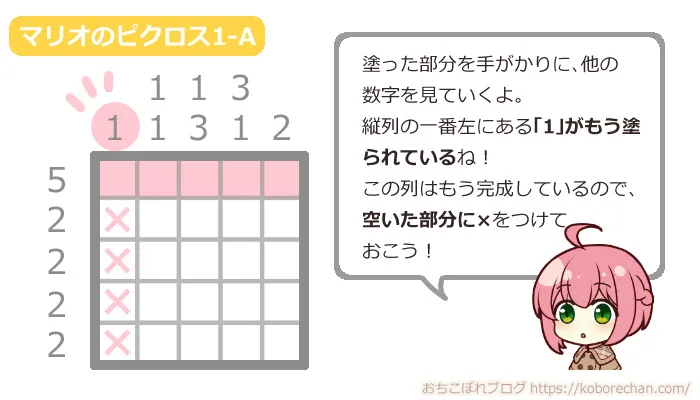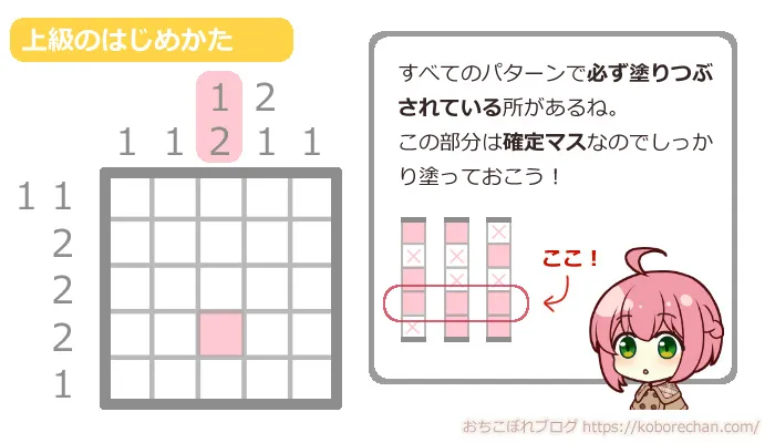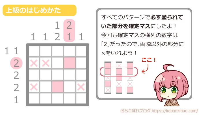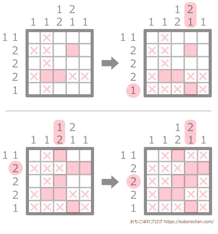 ピクロスの難易度があがるほど、絶対に必要な攻略法になるので、ぜひマスターしてくださいね