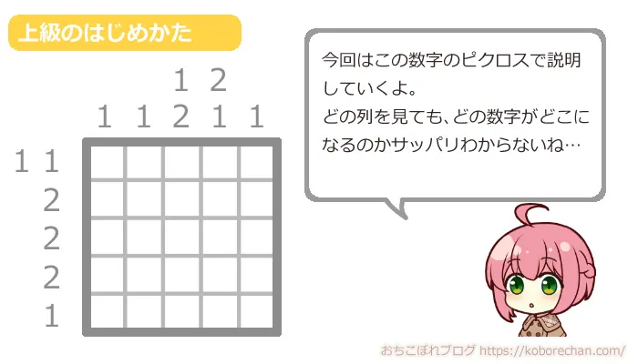 ピクロスはシンプルがゆえに難しく、どこから手をつけていいかわからない!という人も多いと思います。
